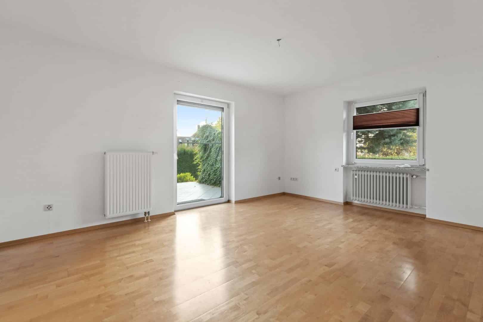 Im Erdgeschoss befindet sich eine gepflegte 3-Zimmer-Wohnung mit ca. 75 m² Wohnfläche. Die hellen Räume sind mit Vinylboden in der Küche, Parkett im Wohn- und Schlafzimmer sowie Fliesen im Badezimmer ausgestattet. Ein besonderes Highlight dieser Einheit ist die Südterrasse mit Markise und der dazugehörige Garten, der zu entspannten Stunden im Freien einlädt.