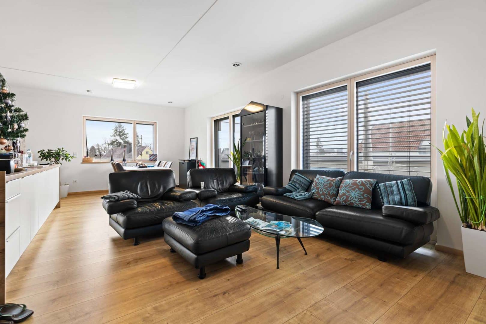 Diese großzügig geschnittene und lichtdurchflutete 3-Zimmer-Wohnung mit einer Wohnfläche von ca. 96,99 m² befindet sich in einer 2015 erbauten und sehr gepflegten Wohnanlage in Gersthofen. Der Hauseingang umfasst insgesamt 9 Wohneinheiten, verteilt auf 4 Wohnetagen, und bietet ein ruhiges sowie angenehmes Wohnumfeld.