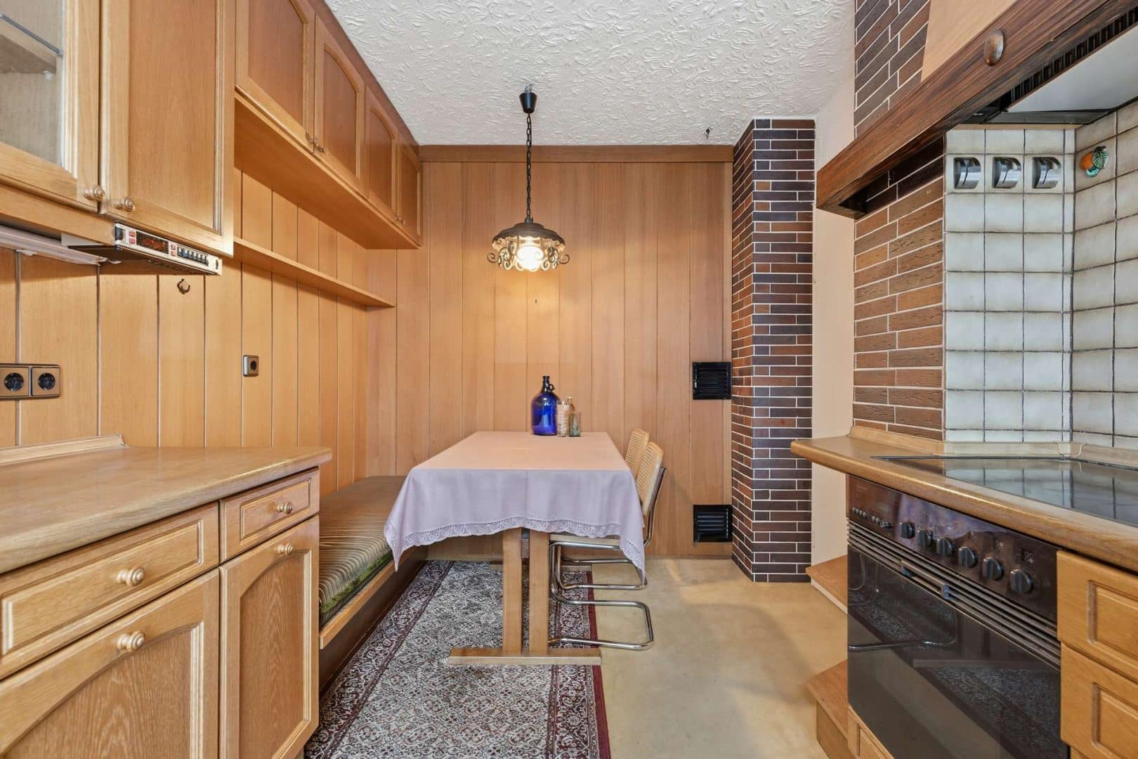 Im Erdgeschoss erwartet Sie ein einladender Wohn- und Essbereich mit direktem Zugang zur Terrasse und in den Garten – der perfekte Ort für entspannte Stunden im Freien. Die separate Küche bietet ausreichend Platz zum Kochen und Genießen. Ein Gäste-WC rundet das Raumangebot auf dieser Ebene ab. Ein zentral platzierter Ofen schafft eine besonders gemütliche Wohnatmosphäre und trägt gleichzeitig zur Beheizung des gesamten Hauses bei.